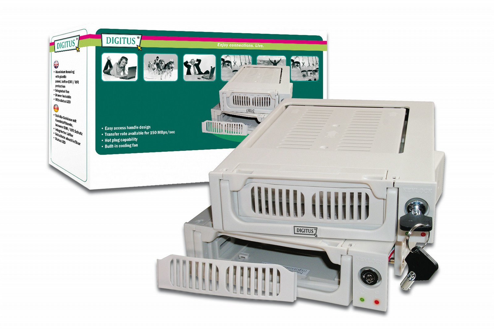 Mobile Rack,SATA, grey, for CD/DVD Bay, Lockable Drawer Plastic, with Status LED