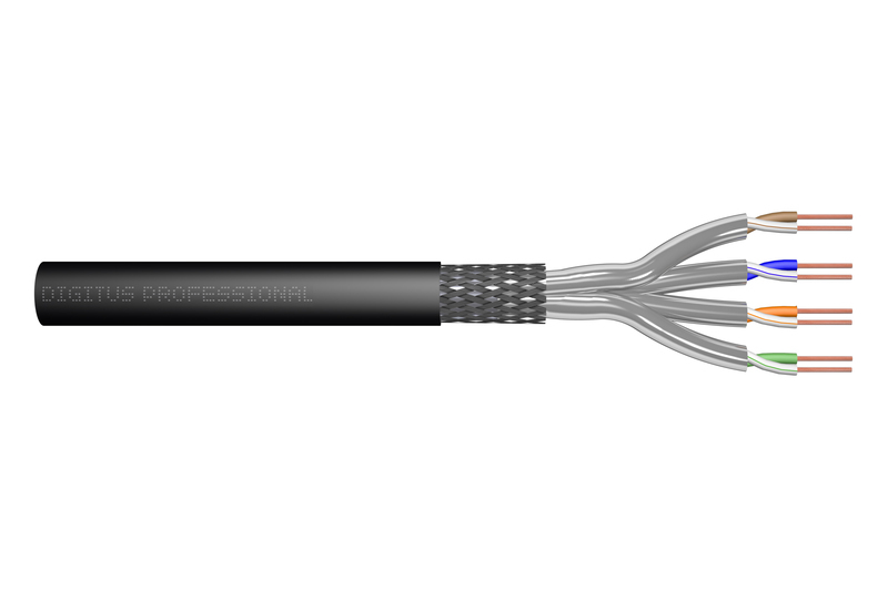 CAT 7 S-FTP PiMF, 1000m, drum, AWG 23/1, 1200MHz PUR, simplex, black