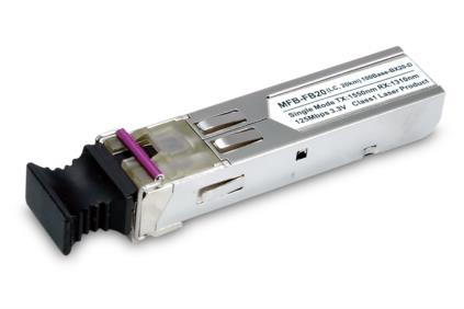 The MFB family consists of Small Form Factor Pluggable (SFP) transceiver modules that are specifically designed for high performance integrated duplex data link over single mode optical fiber. These transceiver modules are compliant with the SFP Multisource Agreement (MSA) and hot pluggable. These modules offer an easy way to be installed in SFP MSA compliant ports at any time without the interruption of the host equipment operation.
