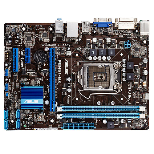 P8H61-MX - Socket 1155, 2x DDR3 DIMM (max. 16GB), Intel H61(B3), 1x PCIe 2.0 x16, 1x PCIe 2.0 x1, 1x PCIe 2.0 x4, 4x SATA II, Gigabit Ethernet, 32Mb Flash ROM, uATX