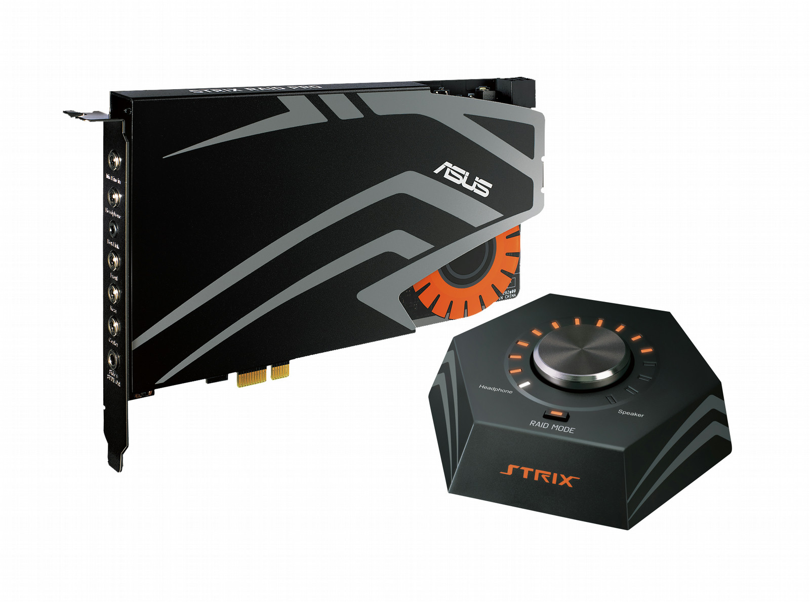 Strix Raid Pro is a premium sound card set built with audiophile-grade components to satisfy gamers who demand ultimate audio performance. Strix Raid Pro features rich, immersive, and clear sound with an incredible 116dB signal-to-noise ratio (SNR), and a 600ohm headphone amplifier for deep, tight bass. The simple yet powerful Sonic Studio sound utility and control box provides complete sound card control and allows instant in-game audio adjustments.