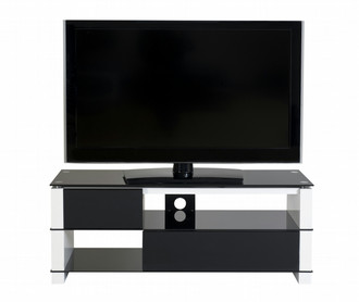 TV stand with white high gloss structure. An extremely functional TV stand with glass panels integrated within the structure. Its sleek design is the hallmark of the exceptional quality of this TV stand.
