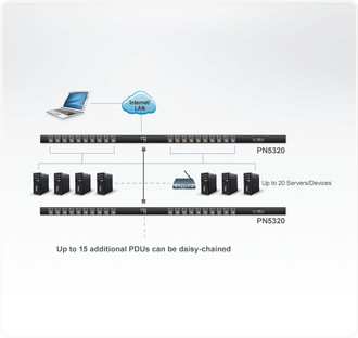 - Current; voltage; power dissipation; and energy consumption displayed in a browsed-based UI for monitoring at PDU and daisy-chain levels