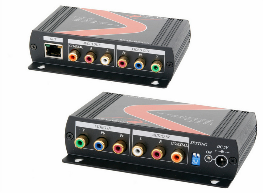 Atlona Extension system is designed for Component Video + Stereo Audio, Digital Audio signal over cost effective CAT5/6/7 cable instead of Component Video and Audio cable. This AV Extender is smart, fast and cost-effective, eliminating costly and bulky Component Video and Audio cable and is the most efficient way to move multimedia content from player to display. Component Video & Audio Extender is used in shopping malls, public address systems, airports, train & bus station, boardrooms, trade shows and computer based training application.