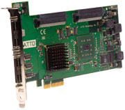 This host adapter is an ideal fit for high performance video/audio editing applications as well as Enterprise servers and high-end workstations running high-volume, mission-critical applications such as messaging and databases. Only ATTO ExpressPCI host adapters feature the exclusive Advanced Data Streaming (ADS™) Technology that allows fast and efficient data movement with reduced CPU utilization.