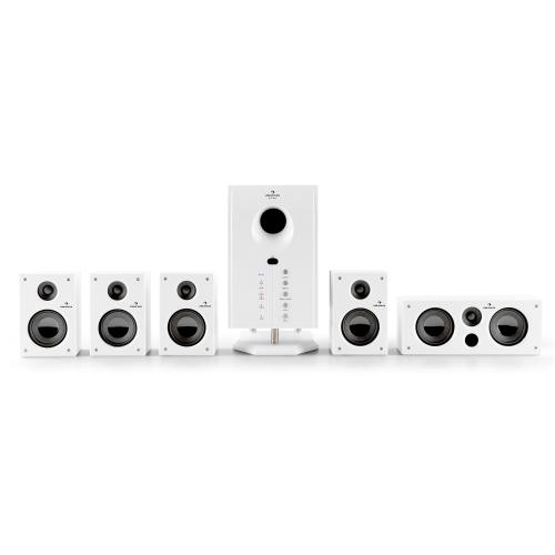 The 5.1 channel input of the Auna Speaker System takes the surround sound from your DVD and Blu-ray players and distributes it to the five stylish satellite speakers and the powerful side-firing subwoofer.
