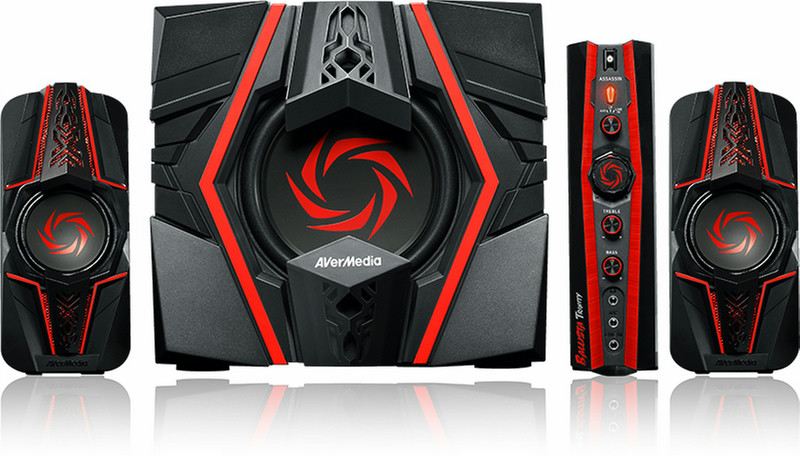 2.1, 35-20000Hz, 48W+2x14.5W, 6.5"/2.75", 3.5mm, RCA, Black/Red