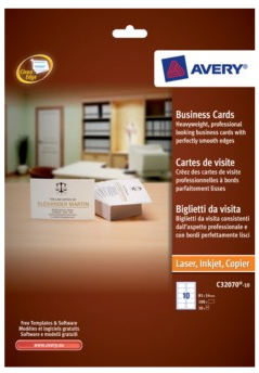 First impressions count! If you want look professional and make the best impression of yourself and your company, Avery Business Cards are ideal. You can customise these printable business cards to represent yourself in your own, unique way. Made from heavyweight card, they separate quickly and easily to give perfectly smooth edges. Make your own business cards using any A4 desktop printer using FREE business card templates available online. A great advantage of do-it-yourself business cards is that you can make changes and print new cards whenever you need to. When it comes to giving a professional impression and communicating efficiently with customers, Avery has a full range of helpful promotional solutions.