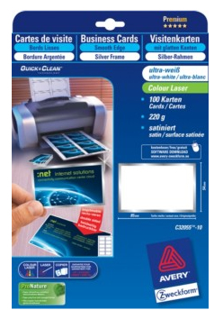 Visitenkarten von der Stange sind "out". Mit diesen selbst bedruckbaren Visitenkarten liegen Sie voll im Trend. Gestalten Sie Ihre Visitenkarten individuell, einfach und schnell. Der elegante silberne Rahmen rückt Ihren Namen immer ins richtige Licht.