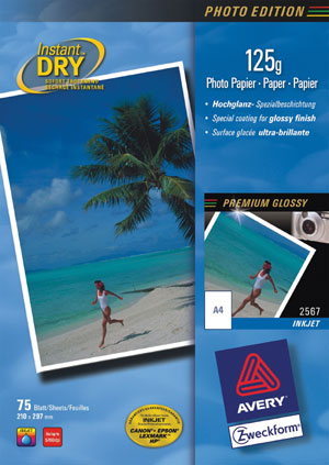 Avery Inkjet Photo-Paper 125 g/m² 75 sheets. Media sheets per package: 75 sheets, Paper dimensions: 210 x 297 mm