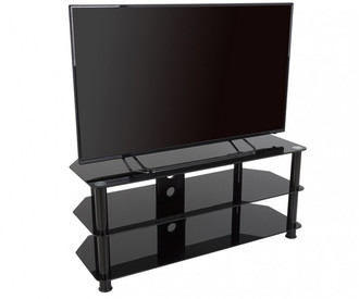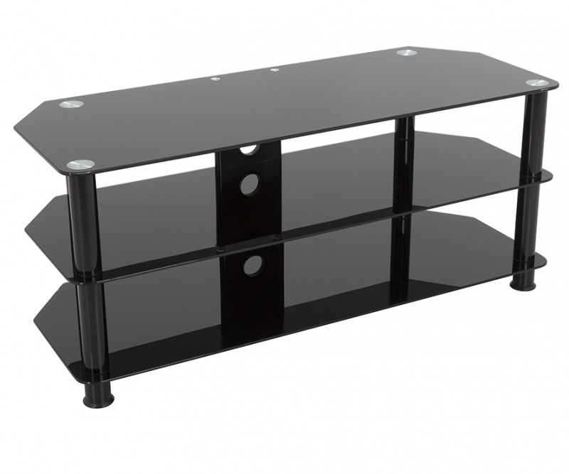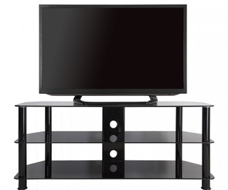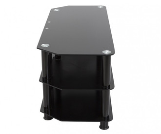 A super easy to construct, contemporary and versatile solution for your home entertainment needs. The black tempered safety glass and durable stainless steel legs modernize any space while the angled corners save valuable space when placed into a corner of your room. Arrange your various AV components on the middle and bottom shelves.