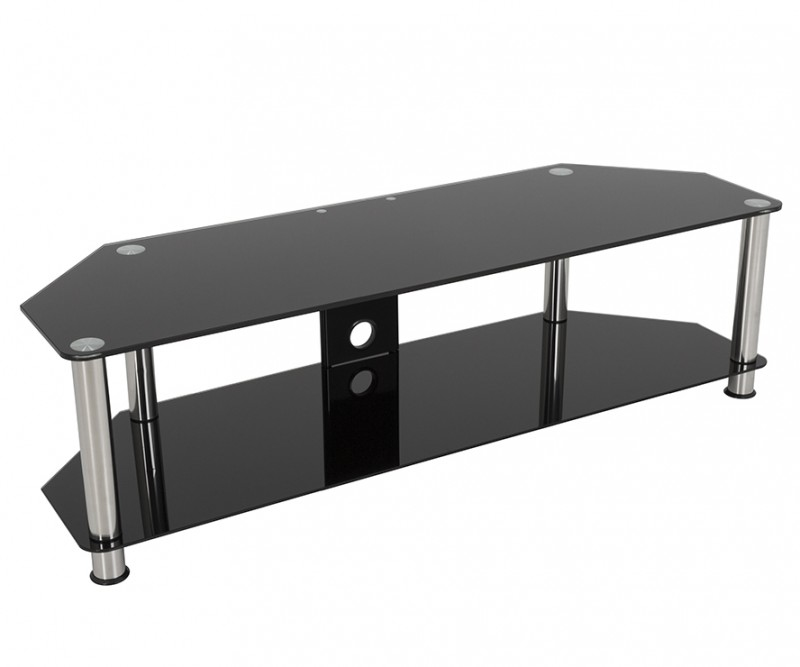 A super easy to construct, contemporary and versatile solution for your home entertainment needs. The black tempered safety glass and durable stainless steel legs modernize any space while the angled corners save valuable space when placed into a corner of your room. Arrange your various AV components on the middle and bottom shelves.