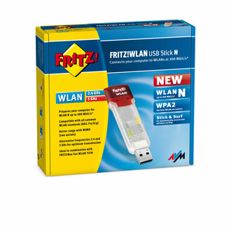 FRITZ!WLAN USB Stick N is a fast and easy way to connect your PC to your FRITZ!Box WLAN and other compatible WLAN routers. Using the new WLAN standard 802.11n, it can boost speeds to up to 300 Mbit/s.