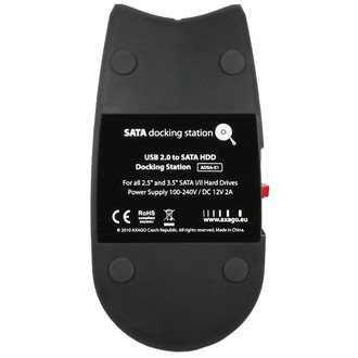 Axago ADSA-X1. Host interface: SATA, Output interface: USB 2.0. Width: 160 mm, Depth: 82 mm, Height: 110 mm. Data transfer rate: 480 Mbit/s, Connectivity technology: Wired, Compatible operating systems: Windows 98SE/ME/2000/XP/Vista/7/2003/2008/Mac OS 9.2+/2.4x Linux+