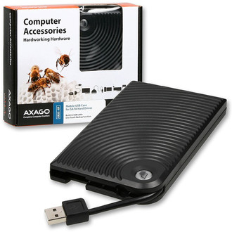 Axago EE25-XP. Supported storage drive interfaces: Serial ATA. Interface: USB 2.0. Colour of product: Black. Compatible operating systems: MS Windows 98SE / ME / 2000 / XP 32/64bit / Vista 32/64bit / 7 32/64bit / Server 2003/2008 32/64bit. Dimensions (WxDxH): 132 x 81 x 17.5 mm, Supported data transfer rates: 12 Mbit/s, 480 Mbit/s