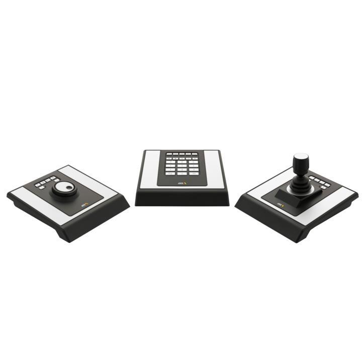 AXIS T8311 Video Surveillance Joystick gives responsive and accurate control of all Axis PTZ and PTZ dome network cameras. With AXIS T8312 Video Surveillance Keypad the user quickly navigates between workspaces, cameras, views and PTZ presets. AXIS T8313 Video Surveillance Jog Dial is used for navigating through recorded video.