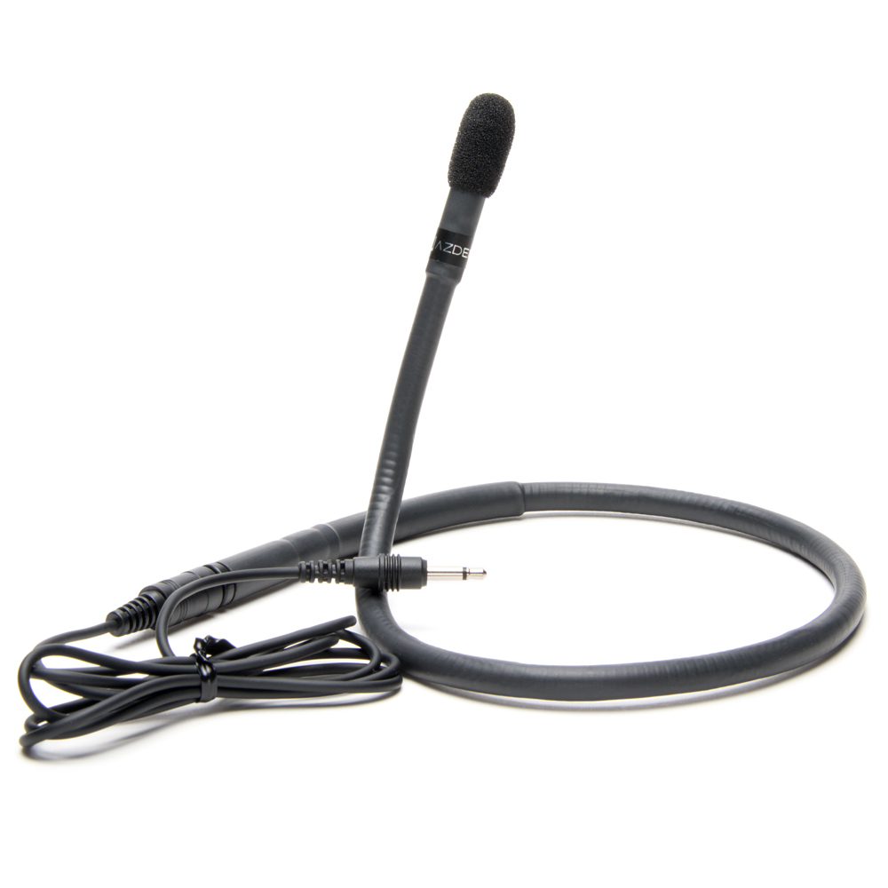 Heavy-duty adjustable collar microphone, ideal for those not wanting to use a head-worn or clip-on microphone. Comes with a replaceable cable with a wired mini-jack (3.5mm). This omni-directional electret condenser microphone requires a bias voltage of 5-9VDC which all Azden bodypack transmitters provide.