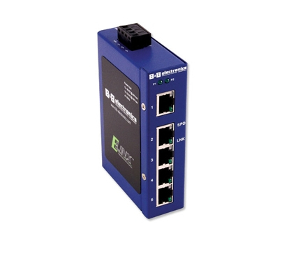 B&B Electronics' Heavy Industrial certified unmanaged 4, 5, 6, and 8 port Ethernet switches with Fiber Option, the ESW200 series, were designed with harsh environment applications in mind. These switches are industrial hardened for rugged, noisy, dirty, applications such as: wind power, traffic control, water management, industrial automation, SCADA, building control, warehousing and more. Features include shock, vibration tested, broadcast storm protection, dual AC, DC power inputs, and hardened IP30 enclosure with Din-rail or panel mounts.