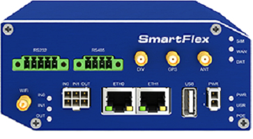 The flexible SmartFlex™ can be configured to suit any application. The standard configuration includes 2 Ethernet ports with 2 independent LANs/IP addresses. The standard configuration also includes 1 USB host port, 1 microSD card holder, 2 SIM card holders for automatic failover to an alternate service provider, 2 binary inputs(I/O) , 1 binary output (I/O) and onboard GPS. An optional built-in WiFi module is also available, with industrial grade operating temperature ranges from -40 to +75 °C (-20 to +60 °C LTE450 module). Further optional boards available: 3x ETH (the router can be configured with up to 5 total Ethernet ports and 3 independent LANs/IP addresses) or ETH – RS232 – RS485 (isolation strenght up to 2.5kV) or RS232 – RS485 (isolation strenght up to 2.5kV) or RS232.