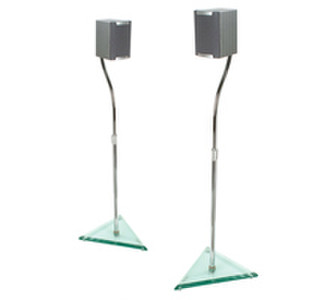 - Contemporary speaker stands featuring chrome plated support columns and 15mm (0.6”) thick tempered glass base;