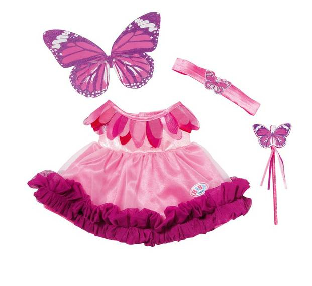 With this set, you will be taking your BABY born® away to the wonderful world of the elves, fairies and mythical creatures in next to no time. This ravishingly beautiful little dress with a decorated neckline and striking ruffled trim is modelled on classic fairy dresses – you probably recognise this kind of dress from one of your favourite films or books. Together with the butterfly wings and headband, your little girl will be transformed into a magical creature. Maybe this is down to the magic wand that also comes with the set? If you close your eyes, you will see your BABY born® laughing with the other fairies as they race around...