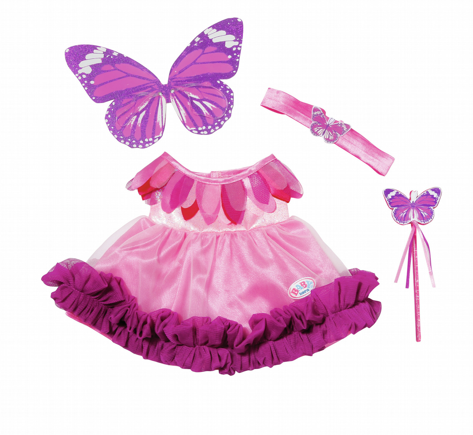 BABY born Wonderland Fairy Dress. Product type: Doll dress, Minimum age: 3 year(s), Colour of product: Pink. Package width: 185 mm, Package depth: 25 mm, Package height: 469.9 mm. Quantity per intermodal container (20ft): 24530 pc(s), Quantity per intermodal container (40ft): 49060 pc(s), Shipping carton width: 21.8 cm