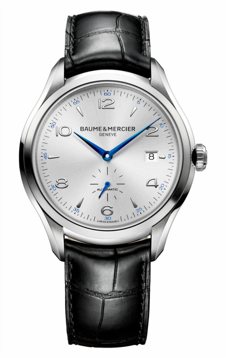 With a 41 mm diameter, this Clifton model inspired by a Baume & Mercier watch dating from the 1950s comes in a round case with thin, curved lugs. A traditional timepiece with its sun satin-finished silver-colored dial with Arabic numerals, water-resistant to 50 meters, and driven by a mechanical self-winding caliber visible through a transparent sapphire crystal case-back. Worn with a black alligator strap closed by an adjustable triple folding buckle with security push-pieces, this model epitomizes those chic city values that we instinctively identify with a timeless charm all of their own.