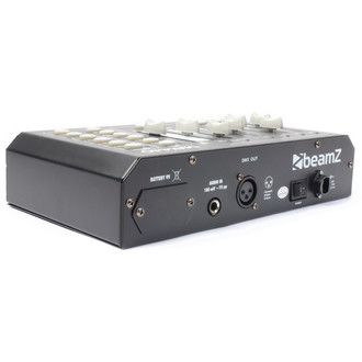 A 4-channel DMX console for controlling all kinds of light effects. Equipped with 4 chases with 4 patterns, 4 programs each with 120 steps and a speed and time control. Works Auto or sound activated via internal microphone. Using the master fader the light can be dimmed in occasions to create a cozy atmosphere. Battery-powered and lightweight for easy use anywhere. Suitable for decorative lighting, zone lighting etc.