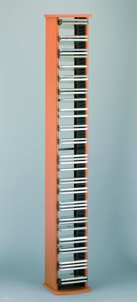Wooden tower for 80 CDs, colour: beech, single carton with coloured sticker.