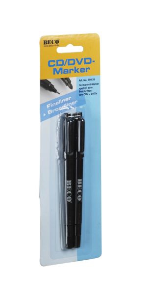 Permanent-marker, wipeproof and waterproof ink, 2-pack, colour: black, 1 fineliner and 1 broadliner, blister packing