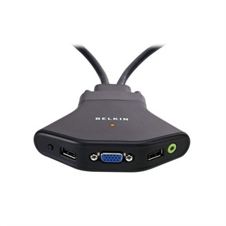 Use one monitor, keyboard, mouse, and speakers between two USB computers. Now you can add a second computer to your home or office, and access both computers from the same desk space. Switch your monitor easily from one computer to the next. The 2-Port KVM Switch includes two 6-foot cables to connect your computers.