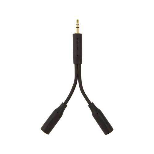 This Belkin Gold Y adaptor allows you to connect 2 headphones to the same audio device. Simply connect your headphones to the ports on the adaptor.