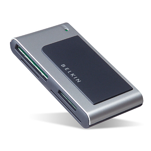 The Hi-Speed USB 2.0 8-in-1 Media Reader/Writer lets you drag and drop files, images, and music to your computer from your PDA or handheld, MP3 player, digital camera, or other device. You can edit, then store your files at transfer speeds of up to 480Mbps¾40 times faster than USB 1.1 media readers. This Media Reader/Writer lets you transfer files from one media card to another, or transfer files from all four media cards simultaneously. It features four dedicated slots to accommodate 8 types of media: CompactFlash I, CompactFlash II, SmartMedia, Secure Digital, MultiMedia, IBM Microdrive, Memory Stick, and Memory Gate Memory Stick. This great new advance from Belkin gives you the flexibility to work with virtually any type of media.