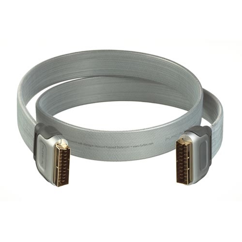 Scart Flat Video Cable, 2.4m Standard oxygen-free copper (OFC) contains hundreds of individual copper crystals per inch, which can negatively affect signals as they pass from one crystal to another. PureAV's PCOCC process creates a single copper crystal with exceptional transmission properties. Scart cable offers an optimal solution for analogue and video transfer. It separates colour in its basic components, exceeding the performance of S-video and composite cables, and includes high quality audio transfer.