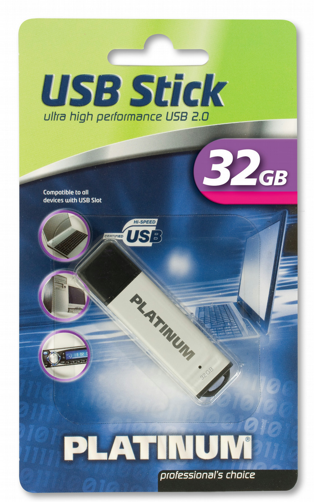 Bestmedia PLATINUM HighSpeed USB Stick 32 GB. Capacity: 32 GB, USB version: USB 2.0, USB connector: Type-A. Colour of product: Silver. Width: 17 mm, Depth: 59 mm, Height: 7 mm. Compatible operating systems: Windows XP/2000/Vista MacOS, Linux 2.4.0