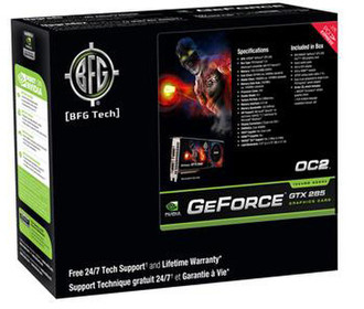Backed by BFG Tech's famous Lifetime Warranty and free 24/7/365 tech support, the BFG NVIDIA® GeForce® GTX 285 OC2 graphics card is factory overclocked to the next level of performance over standard and OC models. Experience true HD gaming and multimedia with up to 2560x1600 resolution. With over 50% more performance than prior generations, the BFG GeForce GTX 285 OC2 graphics card tears through complex DirectX 10® environments and cinematic effects at ultra fast frame rates.