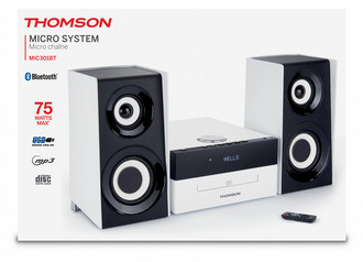 Bigben Interactive MIC301BT. Type: Home audio micro system, Colour of product: Black, White, Number of discs: 1 discs. RMS rated power: 75 W. Supported radio bands: FM, Tuner type: Digital. Backlight colour: White, Display type: LCD. Headphone connectivity: 3.5 mm