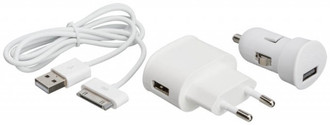 Bigben Interactive PACKDUOIPWBB. Charger type: Auto, Indoor, Charger compatibility: Smartphone, Power source type: AC, Cigar lighter. Colour of product: White, Cable length: 1 m. Port 1 output current: 1 A. Package type: Box