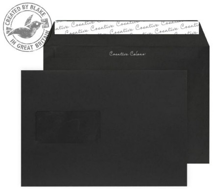 Jet Black, C5 162x229mm, Window 45 x 90mm, 60up, 20lhs, Gummed, Pack 500, 120 GSM, Wallet, Matching Paper Available, Blue Hatch Security OpaqueFSC Certified Product
