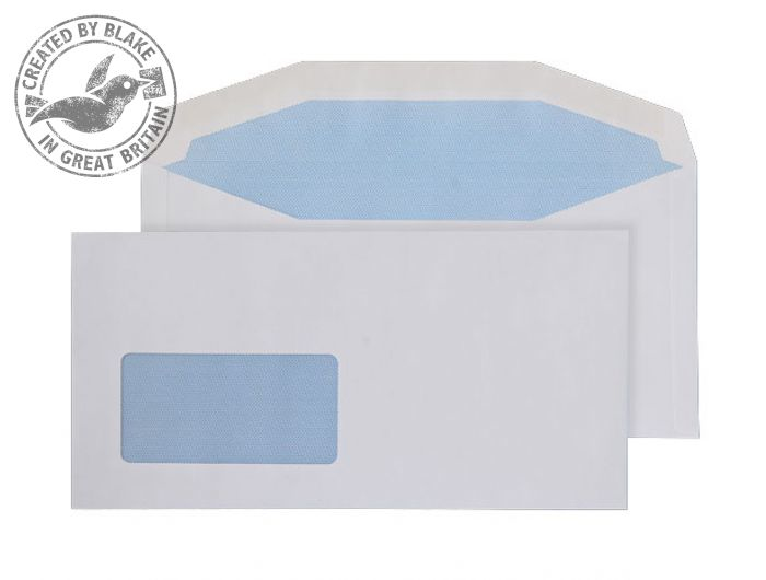 White, C6 114x229mm, Window 45 x 90mm, 18up, 20 lhs, Gummed, Pack 1000, 110 GSM, Mailer, Blue Hatch Security Opaque