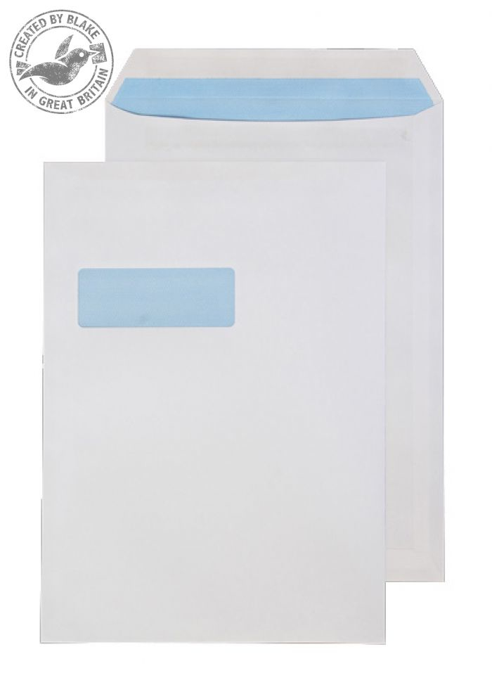 White, C4 324x229mm, Window 40 x 105mm, 213up 24left, Self Seal, Pack 250, 100 GSM, Pocket, Blue Hatch Security Opaque