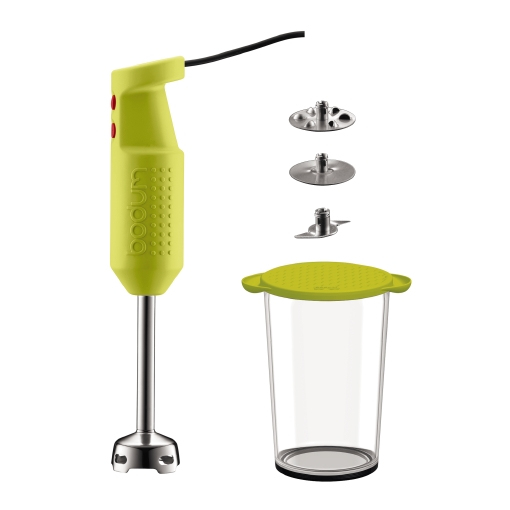 When we think of the benefits of using our BISTRO Blender Stick, three things immediately come to mind; it’s easy and fun to work with, it helps make nutritious foods, and it’s easy to clean. It comes with three easy stick-on attachments: the knife for making anything from mouthwatering smoothies on ice to steamy creamy vegetable soups; the whisk for making fabulously airy mashed potatoes; and the beater for making thick milk foam, whipped cream or for beating eggs. It also comes with a beaker for puréeing and storing leftovers in the fridge when it’s topped of with the lid. The BISTRO Blender Stick is great for baby food, too, by the way. It will become your number one can’t-live-without kitchen tool in no time. Just stick it into any pan, pot, glass or bowl and it will do its job effortlessly at push of a button. Once you’re done, simply let it run in a bowl of hot water for a bit and it cleans itself. The 2-speed BISTRO Blender Stick is made from plastic and stainless steel.