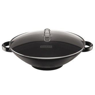 Take the cast iron Bodum Wok, toss in a little Japanese style, add some Thai simplicity, and spice it up with Indian flavors. The only limit is your imagination. In fusion cuisine everybody is his or her own creative chef. Just follow your instincts and invent new combinations of the freshest ingredients and the richness of the world's diverse culinary techniques. The cast iron Wok is made for gas, ceramic and conventional stovetops, and it's a superb cooking tool for induction stoves. The unique heat conduction characteristic of cast iron makes this Wok a perfect tool for Fusion cooking. It keeps a constant heat at any stovetop setting so you are in charge and can easily concentrate on cooking. The practical wok-rack makes it possible for you to cook vegetables and meat at different times in your cooking process. Who said that cooking is all about timing! That's why we provided this Wok with a solid glass lid... to keep you in touch with your creation! And by the way: The design of the Bodum wok is a perfect fusion of the traditional and modern - its simplicity accentuates the colorful richness of the world's cuisines.