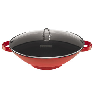 Take the cast iron Bodum Wok, toss in a little Japanese style, add some Thai simplicity, and spice it up with Indian flavors. The only limit is your imagination. In fusion cuisine everybody is his or her own creative chef. Just follow your instincts and invent new combinations of the freshest ingredients and the richness of the world's diverse culinary techniques. The cast iron Wok is made for gas, ceramic and conventional stovetops, and it's a superb cooking tool for induction stoves. The unique heat conduction characteristic of cast iron makes this Wok a perfect tool for Fusion cooking. It keeps a constant heat at any stovetop setting so you are in charge and can easily concentrate on cooking. The practical wok-rack makes it possible for you to cook vegetables and meat at different times in your cooking process. Who said that cooking is all about timing! That's why we provided this Wok with a solid glass lid... to keep you in touch with your creation! And by the way: The design of the Bodum wok is a perfect fusion of the traditional and modern - its simplicity accentuates the colorful richness of the world's cuisines.