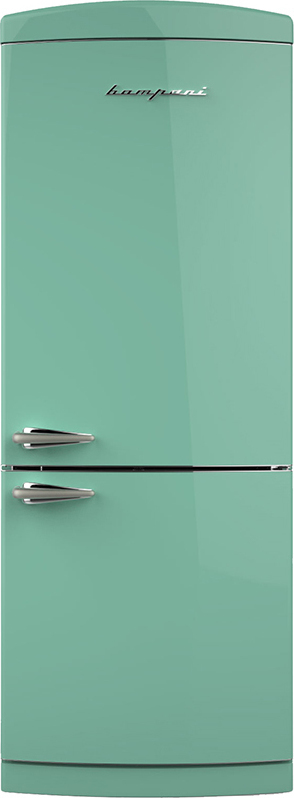 Bompani BOCB740/T. Case design: Freestanding, Colour of product: Turquoise, Door hinge: Right. Total net capacity: 382 L, Total gross capacity: 415 L, Climate class: T. Fridge net capacity: 285 L, Lamp type: LED. Freezer position: Bottom-placed, Freezer net capacity: 97 L, Star rating: 4*. Energy efficiency class: A+, Annual energy consumption: 352 kWh