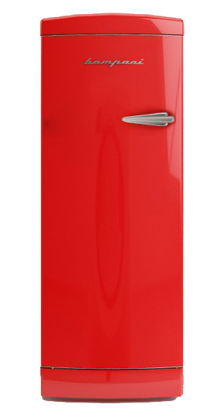 Bompani BOMP107/R. Case design: Freestanding, Colour of product: Red, Door hinge: Left. Total net capacity: 270 L, Total gross capacity: 275 L, Climate class: T. Fridge net capacity: 240 L. Freezer position: Top-placed, Freezer net capacity: 30 L, Star rating: 4*. Energy efficiency class: A++, Annual energy consumption: 185 kWh
