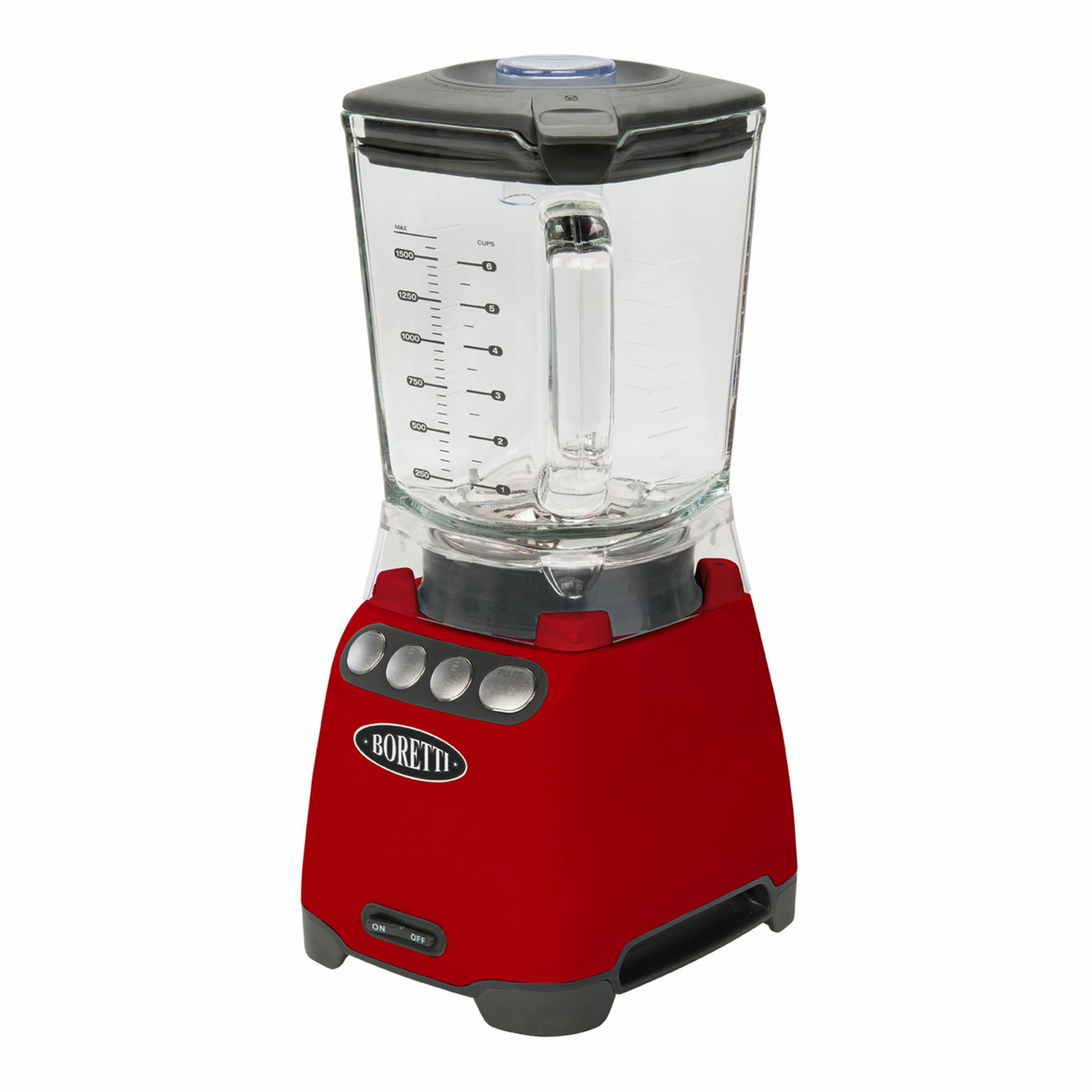 Boretti Frullatore. Type: Stand mixer, Control type: Buttons, Mixer functions: Blend, Ice crushing, Mixing. Colour of product: Black, Red. Material jar(s): Glass. Power: 1080 W