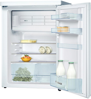 Bosch KTL75E21. Colour of product: White, Door hinge: Right, Door opening angle: 90°. Total net capacity: 132 L, Total gross capacity: 137 L, Noise level: 37 dB. Fridge net capacity: 116 L. Freezer net capacity: 16 L, Freezing capacity: 2 kg/24h, Storage time during power failure: 12 h. Connected load: 90 W, Annual energy consumption: 125.20 kWh