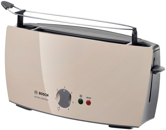Grille pain - Contrôle électronique de brunissage - 1 fente - Centrage automatique du pain - 6 niveaux de brunissage - Dispositif de remontée extra haute - Parois froides - Tiroir ramasse-miettes amovible
