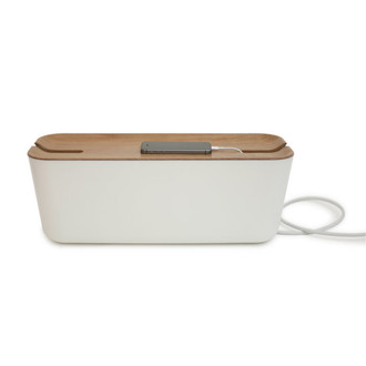 While the base of Hideaway becomes a storage box for all cables, the top acts as a basin or tray for storing and charging smaller electronic devices. Phones, iPods, iPads digital cameras and other gadgets that need charging rest securely in the scooped-out lid and can easily be connected and disconnected. The power supply cable runs from the underside of the box, while the cable that connects to your mobile phone, tablet or other gadget runs through a hole in the lid.